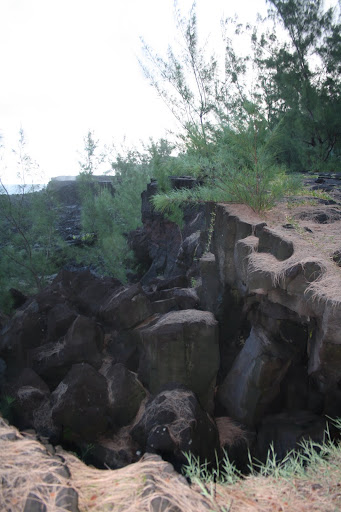 partis dépotron-minets (5h du mat) avec Fab et Sophie, on est partis vers Salazie par les plaines, et la, catastrophe, un brouillard et un temps de chien... Pas de bol, et ça jusque st-Benoit. Bref, on à pas tenté l'impossible et avons préféré faire un petit tour dans l'est puis le sud sauvage par les coulées de lave, plutôt que de tenter le diable en entrant dans le cirque.