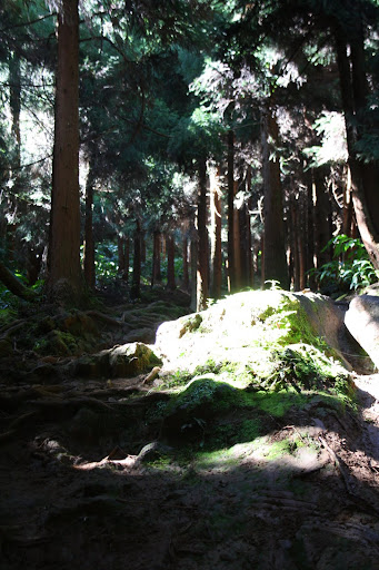 Petite rando en douceur pour commencer, 2h30 en boucle, sans trop se presser et avec une bonne pause en haut. C'est très joli, on commence par une petite balade tranquille dans une végétation plus ou moins dense, sur un chemin escarpé plus ou moins large, qui nous amène sur une côte assez raide et fatiguante, dans une forêt de cryptomérias. Superbe.