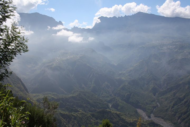 Mais par contre, quelle vue ! Tout le cirque s'étale devant (dessous) nous, on peut voir la route aux 400 (?) virages qui mène à Cilaos, et tout les plateaux abritant les petits villages paumés du cirque. C'est tout bonnement incroyable.